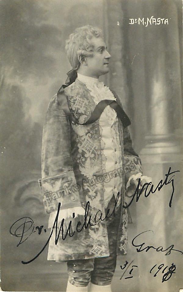 Romanian tenor (1879-?), signed photo postcard, shown in Graz, dated in 1918. Size is 3.25 x 5.25 inches