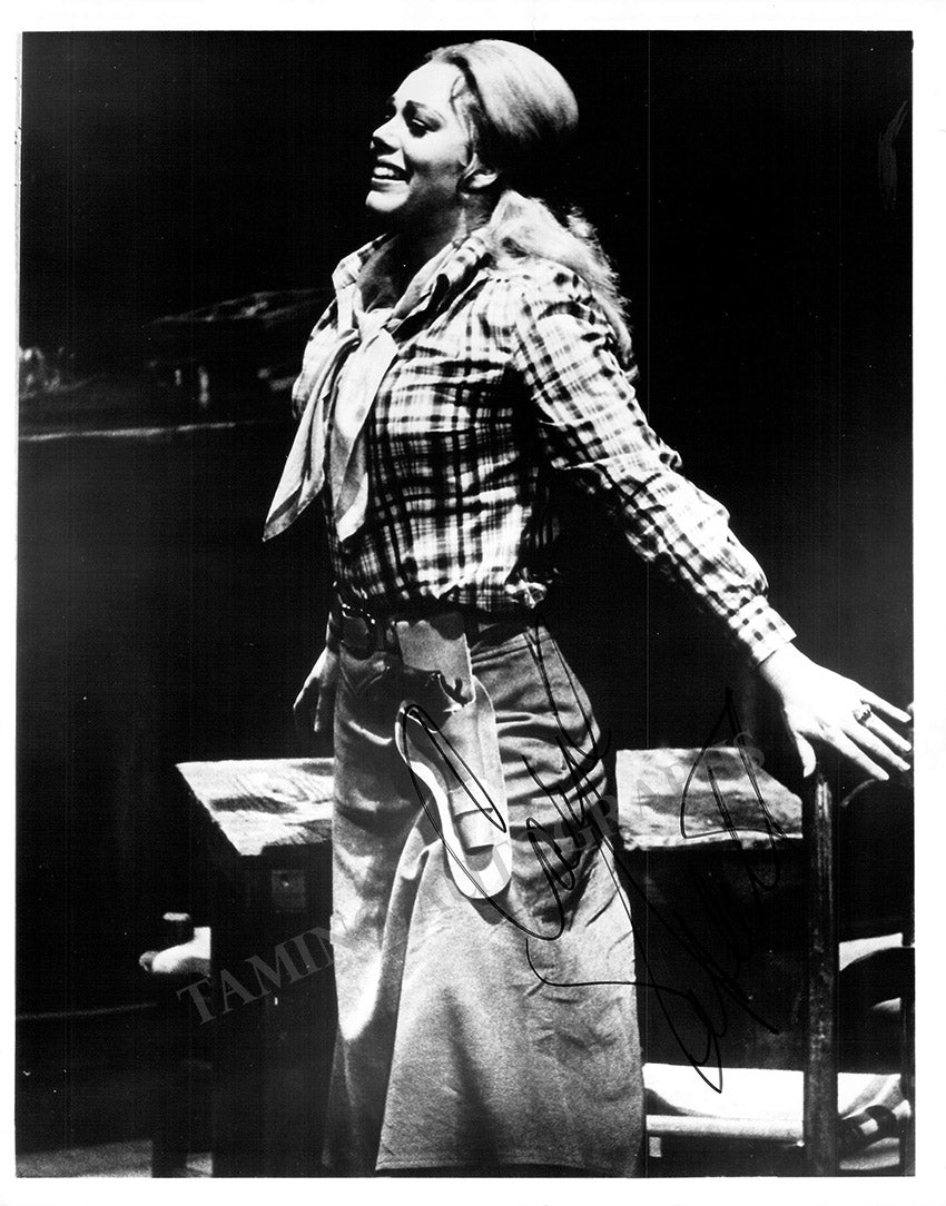 Beautiful black-and-white photograph signed by her, shown as Minnie in Puccini's opera La Fanciulla del West. Size is 7.8 x 10.1 inches, in excellent condition.