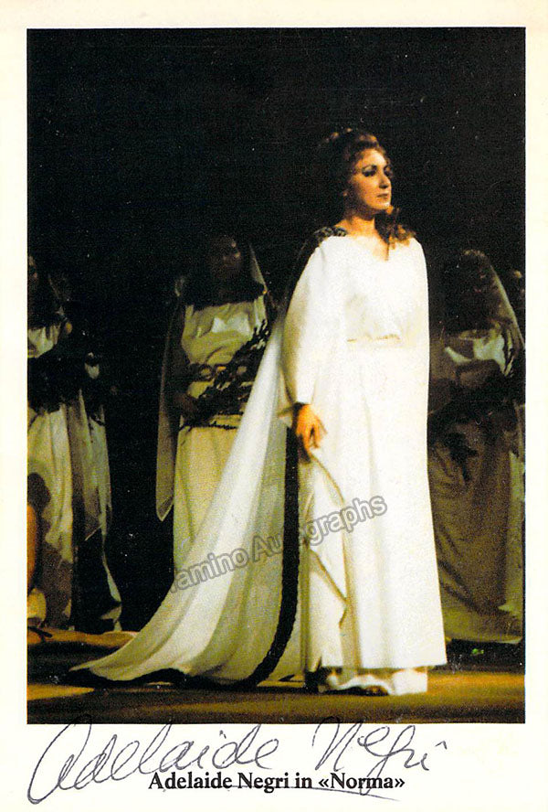 Signed photo, shown in title role of Bellini's Norma. Size is 4 x 6 inches, in excellent condition.