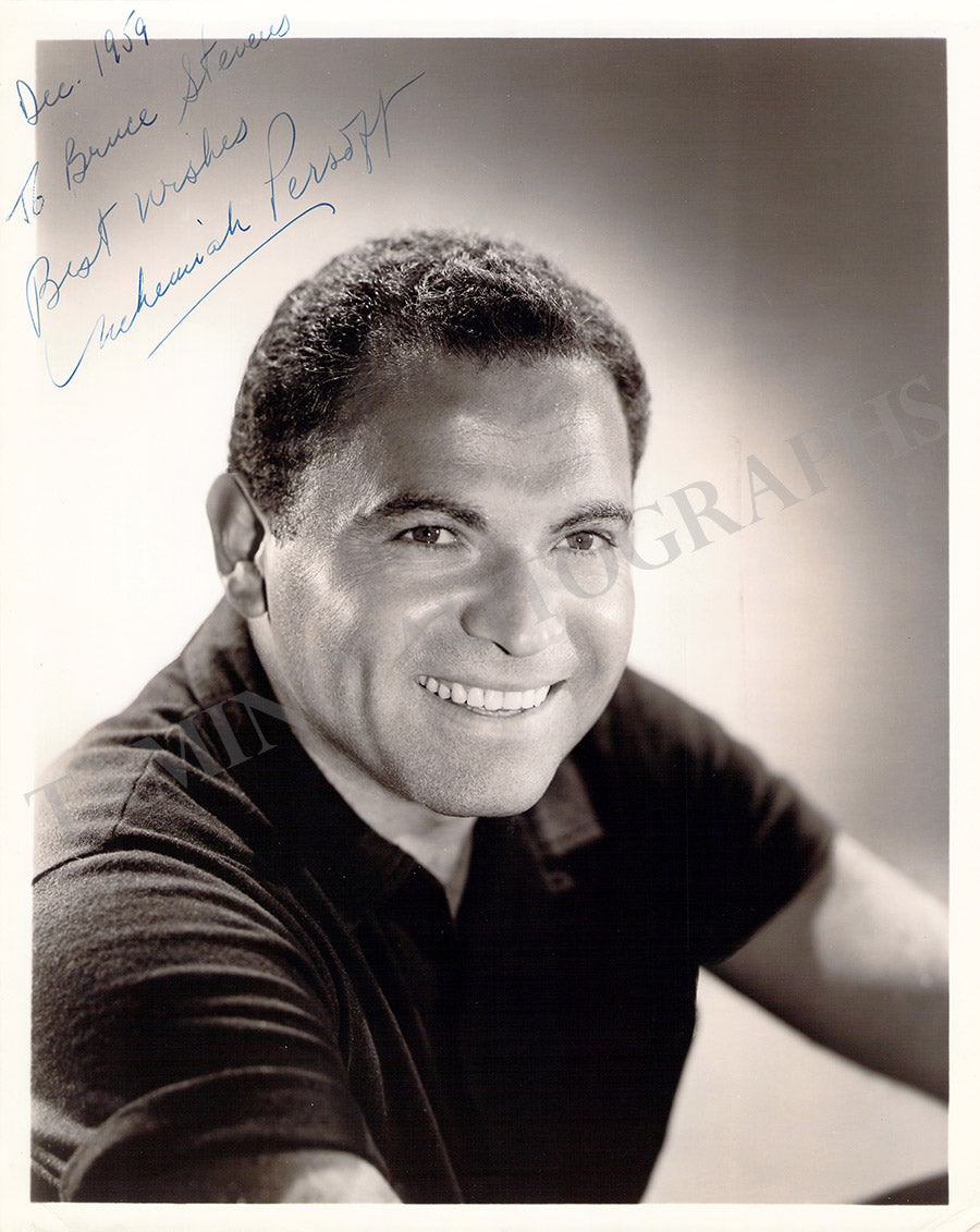 Black-and-white photograph signed and inscribed by him with a short sentiment dated 1959. Size is 8 x 10.1 inches, in excellent condition.