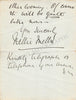 Fine album page signed and inscribed by her with a short sentiment dated 1904. Size is 5.9 x 8.3 inches, some rust tone over the borders, otherwise in excellent condition.