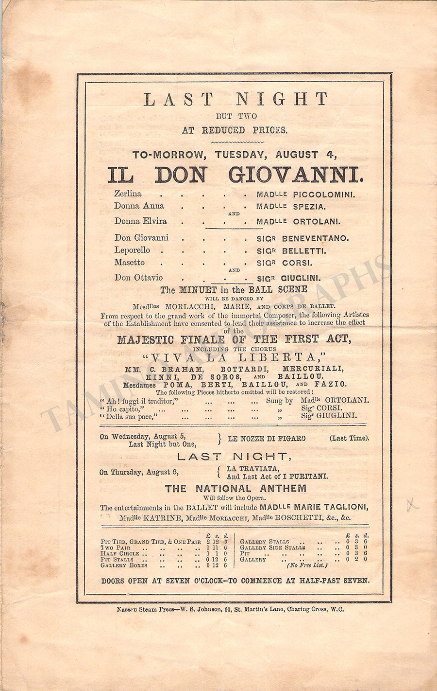 ALSO INCLUDED is a program for a performance of Donizetti's opera "La Fille du Reggiment"  and the ballet "Alcalista" featuring Perea at Her Majesty's Theater. Size is 6.2 x 9.8 inches, some stains and folds.