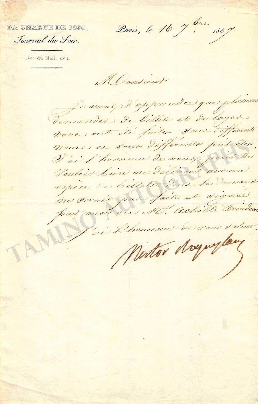 Roqueplan, Nestor - Set of 2 Autograph Letters Signed Roqueplan, Nestor - Set of 2 Autograph Letters Signed