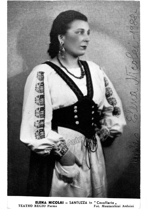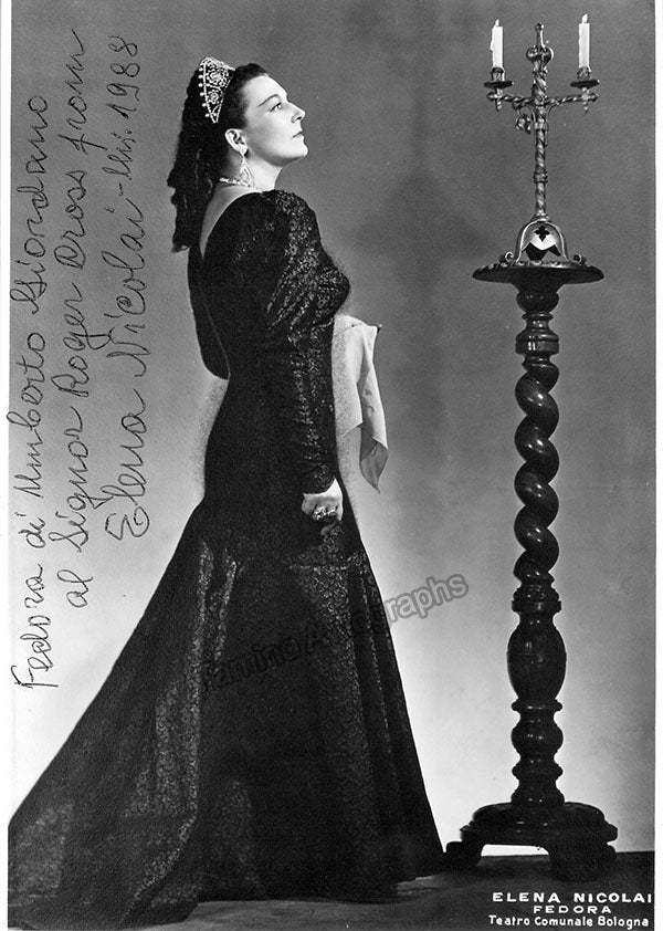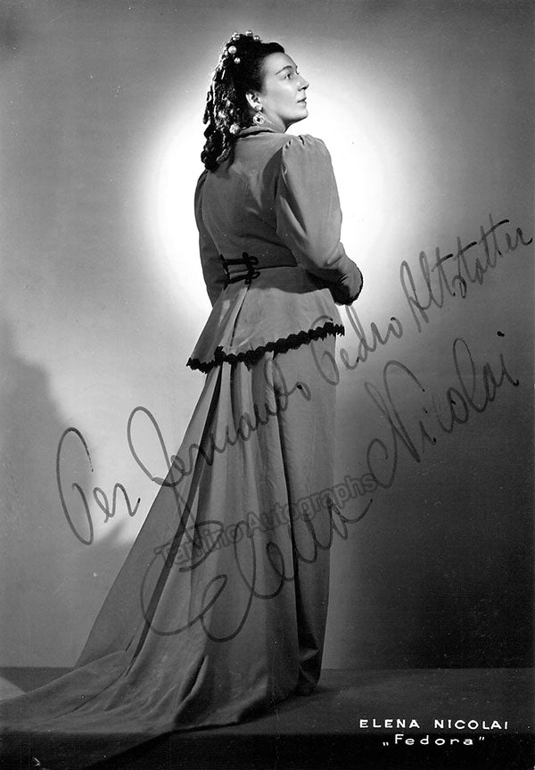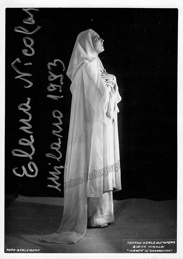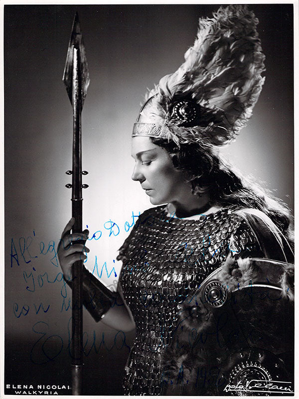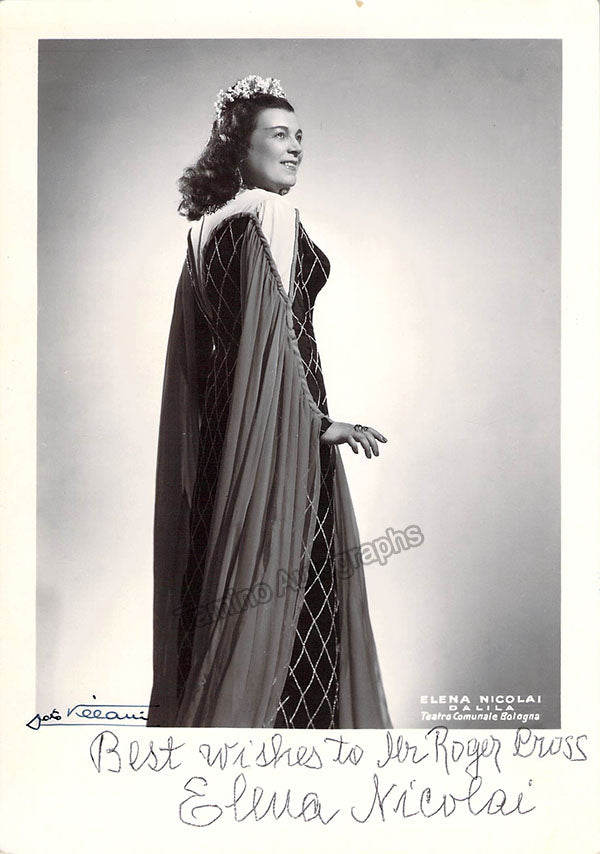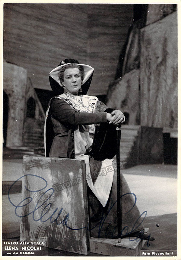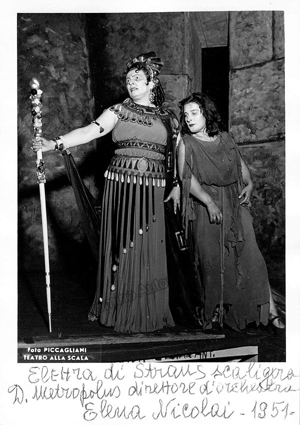 Signed photograph, shown as Klytemnestra in Richard Strauss's Elektra, dated in 1951. Photo by Piccagliani, La Scala, Milan. Size is 4 x 5.75 inches, in excellent condition.