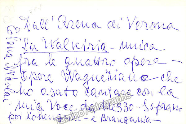 Signed photograph, shown as Ortrud in Wagner's Lohengrin, inscribed and dated in Milan in 1993. Photo by M. Camuzzi, La Scala, Milan. Size is 6.5 x 9 inches, in excellent condition.