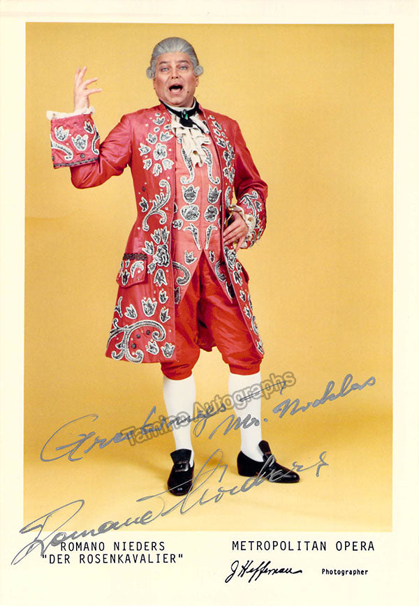 Austrian bass baritone (1934-2013), signed photograph, shown as Baron Ochs in Richard Strauss's Der Rosenkavalier, inscribed. Photo by James Heffernan, Metropolitan Opera, New York. Size is 5 x 7 inches, in excellent condition.