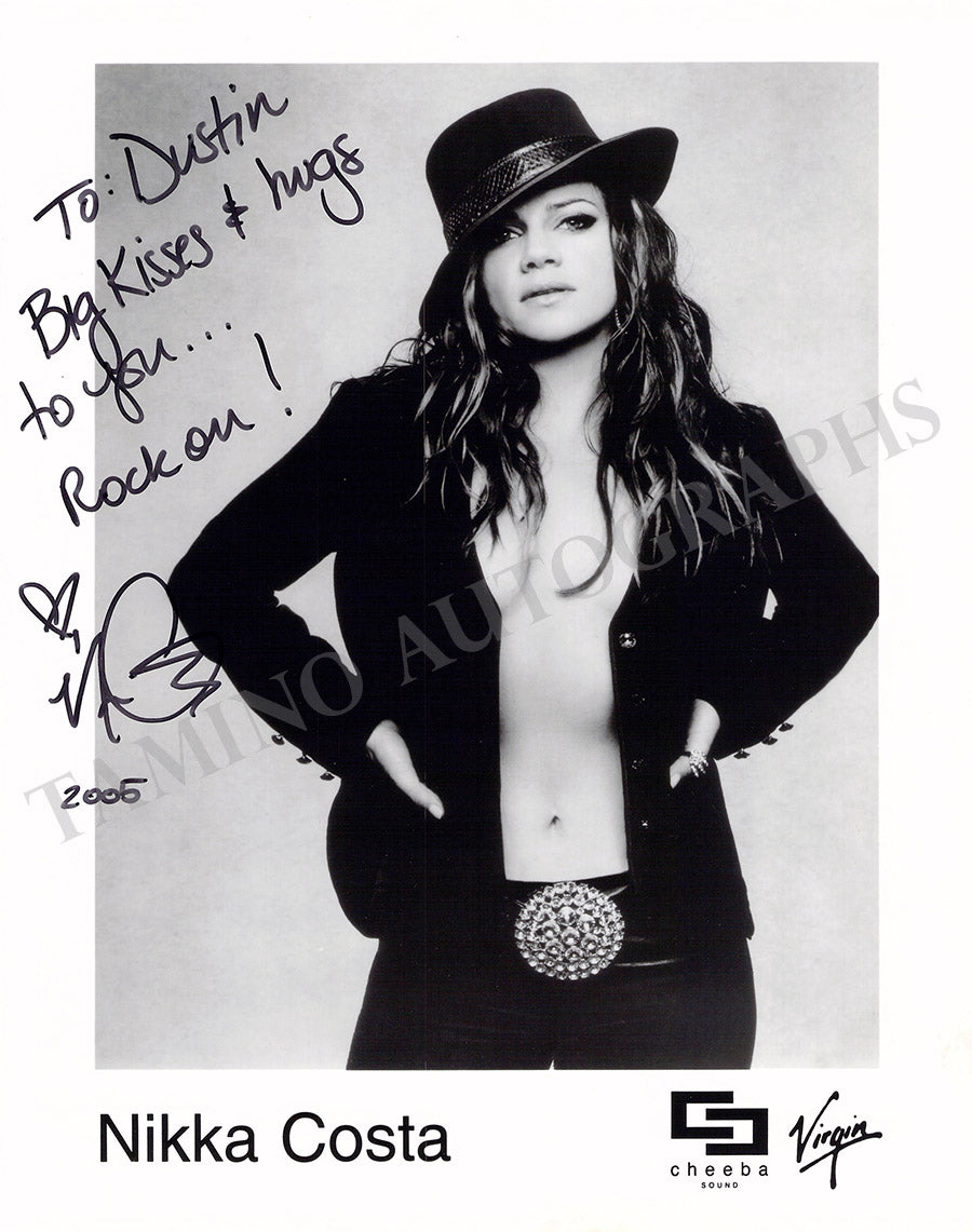 Black-and-white promo photograph signed and inscribed by her with a short sentiment dated 2005. Size is 7.8 x 10 inches, in very good condition.