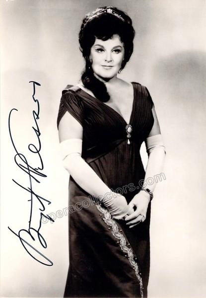 Swedish star soprano (1918-2005), world famous for her interpretations of dramatic roles in Wagner, Puccini and Richard Strauss operas. Signed photo, shown in the title role in "Tosca", opera by Puccini, size is 4 x 6 inches.