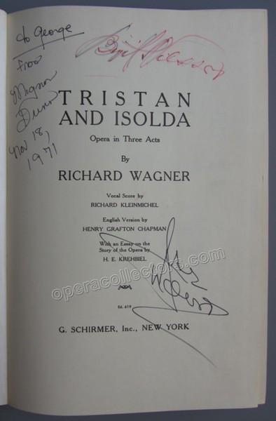 Tristan und Isolde (Wagner) full score for singers and piano, signed on page 1 by these 3 performers. Schirmer, NY, 1934 edition, complete with all 302 pages and covers, in excellent condition. Size is 7.5 x 11 inches
