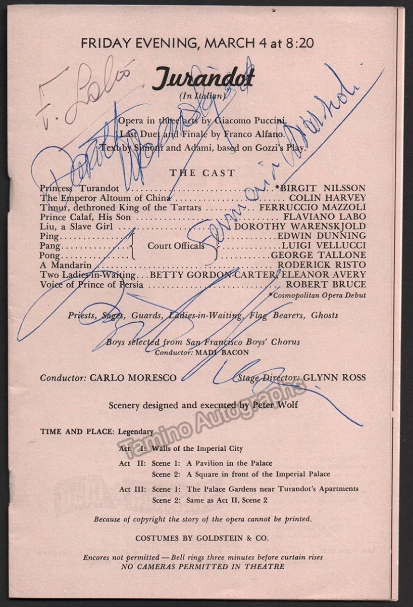 Nilsson, Birgit - Warenskjold, Dorothy - Mazzoli, Ferruccio - Labo, Flaviano - Signed Program 1960