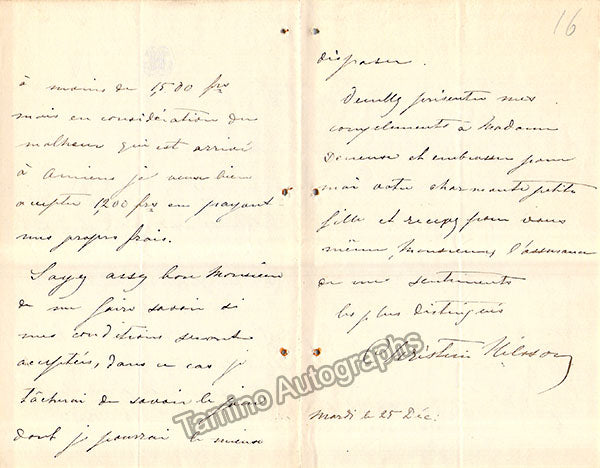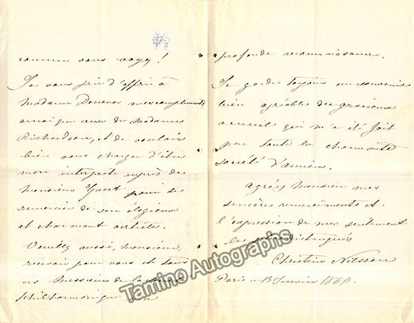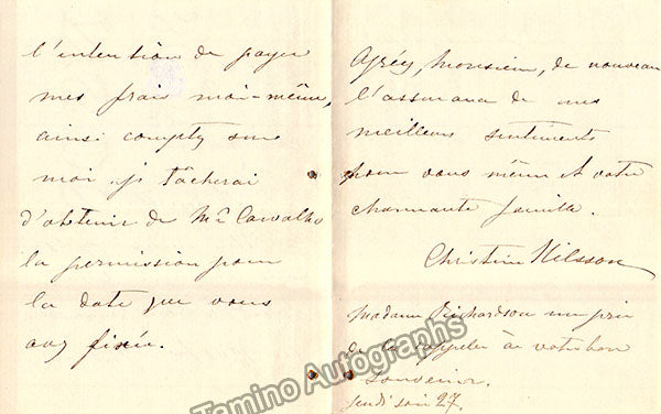 Nilsson, Christine - Lot of 3 Autograph Letters Signed