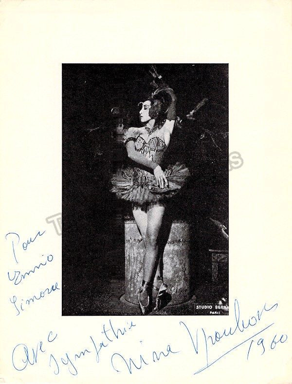Signed half-tone photo, dated by her in 1960, inscribed. Size is 5 x 6.5 inches, in excellent condition
