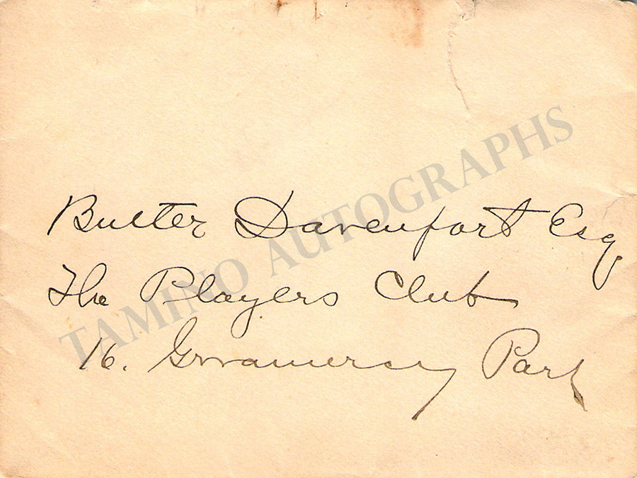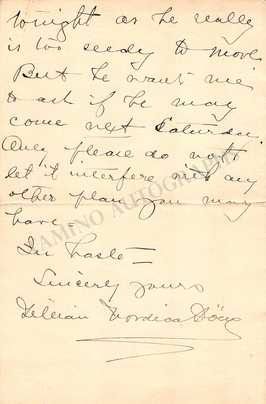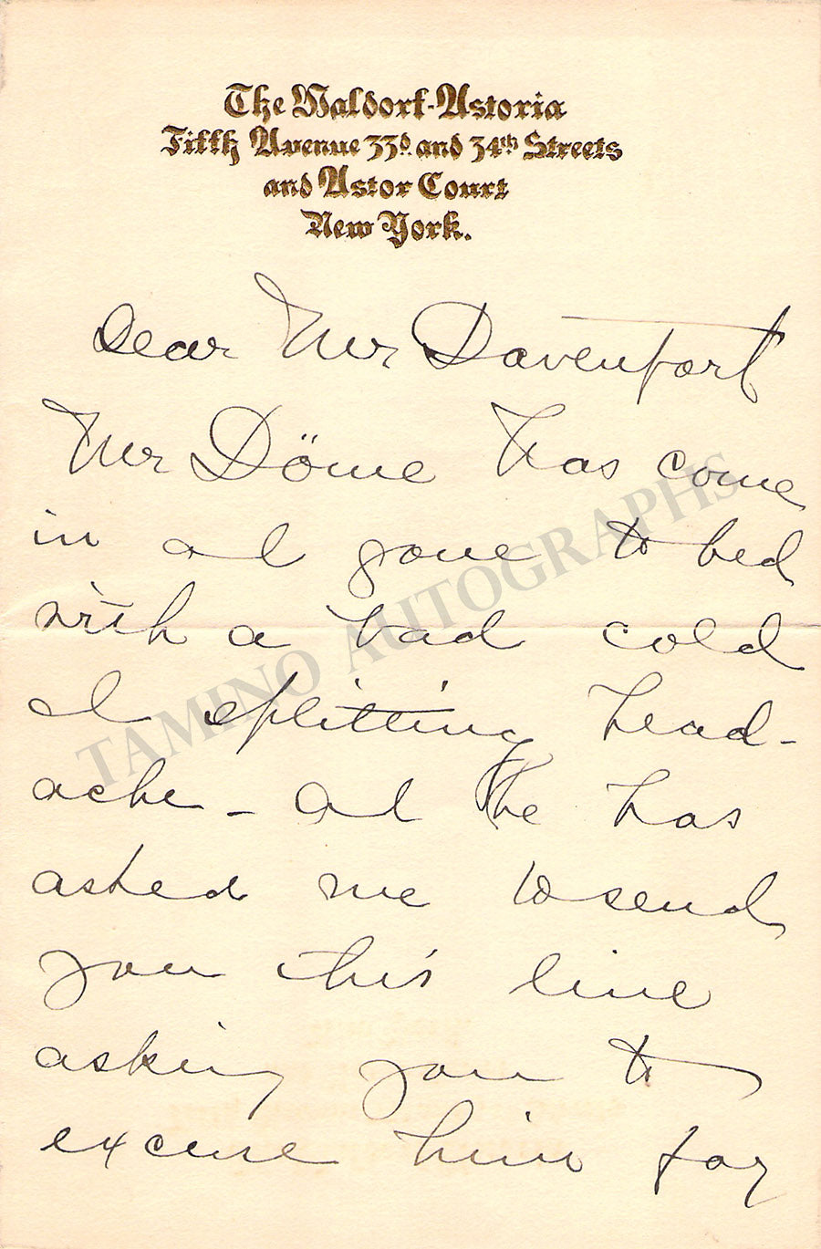 American soprano (1857-1914), autograph letter signed, written on the stationary of the Waldorf-Astoria Hotel, New York, 2 pages written in English. Size of each page is 4.25 x 6.25 inches, in excellent condition.