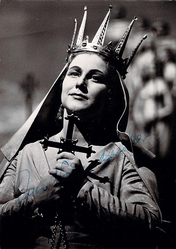 Norwegian soprano (1923-2013), signed photo, shown as Elsa in Wagner's Lohengrin at the 1960 Bayreuth Festival. Stamped on verso by photographer Siegfried Lauterwasser, Bayreuth. Size is 5 x 7 inches, some bending, otherwise in good condition.