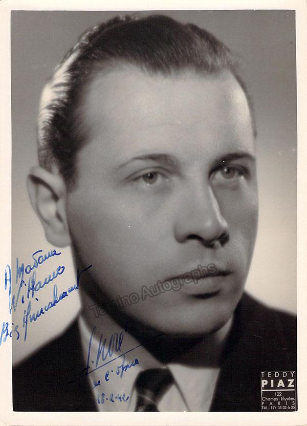 French tenor (1910-2002), large signed photo, shown as himself, dated in 1946. Inscribed. Photo by Teddy Diaz, Paris. Size is 5 x 7 inches, in extremely good condition.