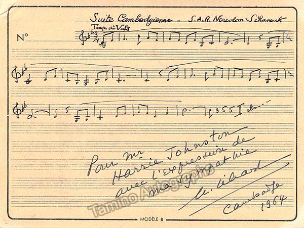 Sihanouk, Norodom - Autograph Music Quote Signed 1964