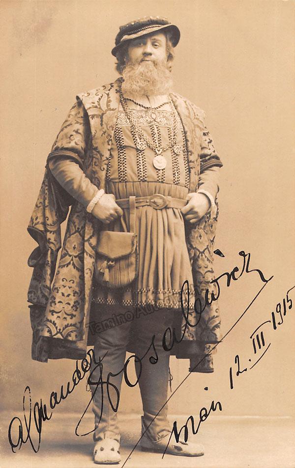 Romanian bass (1874-1959), signed photo postcard, shown in role, dated 1915. Photograph by Ludwig Gutmann, Vienna. Very attractive rare and historic photo. Size is 3.5 x 5.5 inches, in excellent condition.