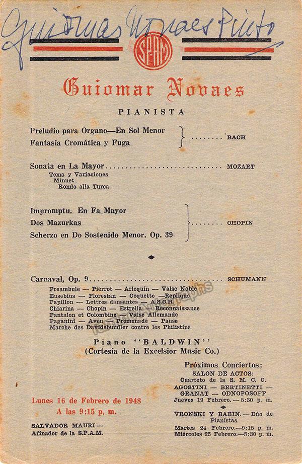 Novaes, Guiomar - Signed Program Havana 1948