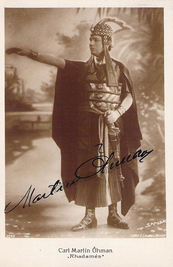 Swedish tenor‭ ‬(1887-1967),‭ ‬signed photo postcard,‭ ‬shown as Radames in Aida‭. Size is ‬3.5 x 5.5‭ ‬inches, in excellent condition.