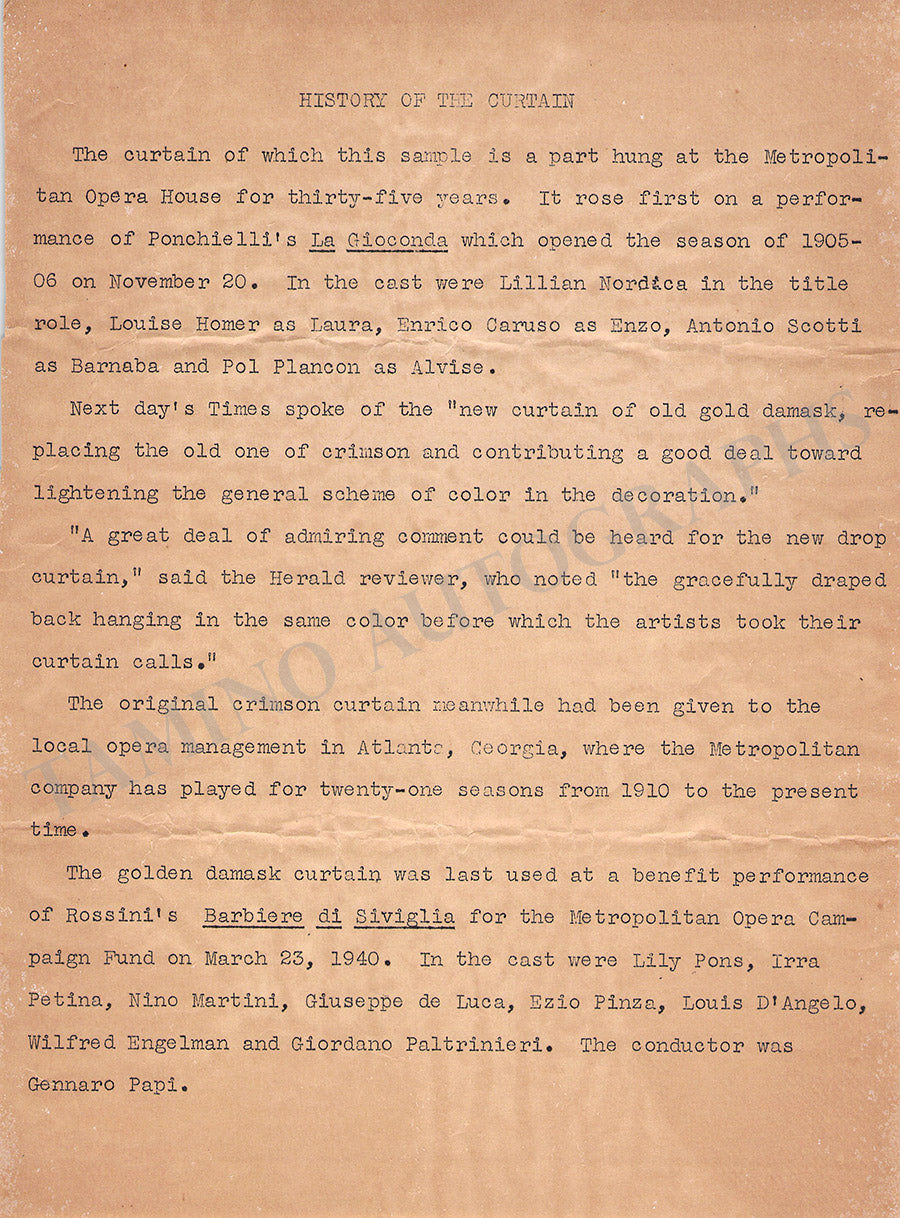 Metropolitan Opera - Old Met Curtain Piece Metropolitan Opera - Old Met Curtain Piece