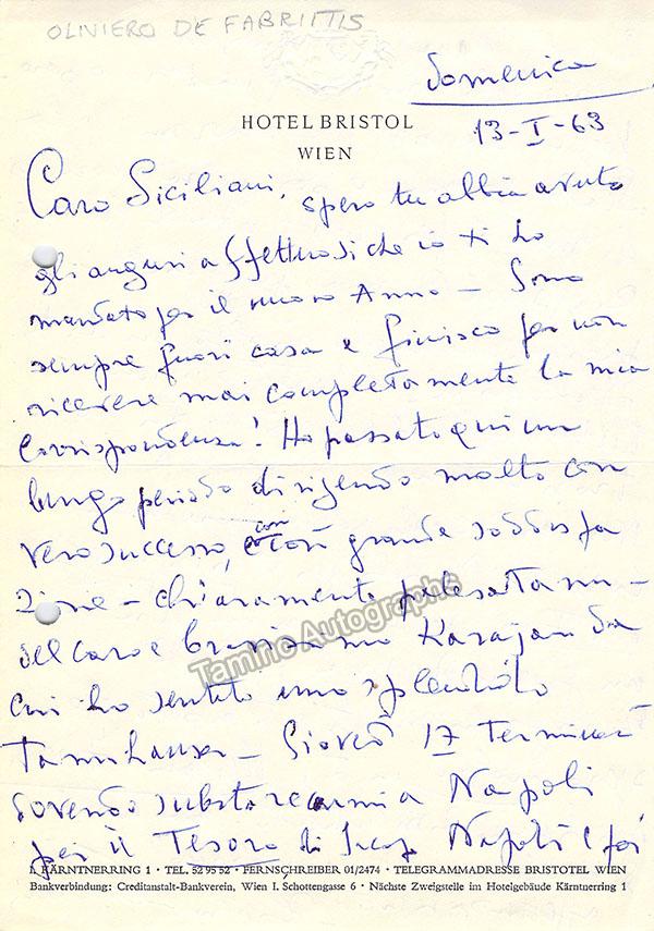 De Fabritiis, Oliviero - Autograph Letter Signed 1963