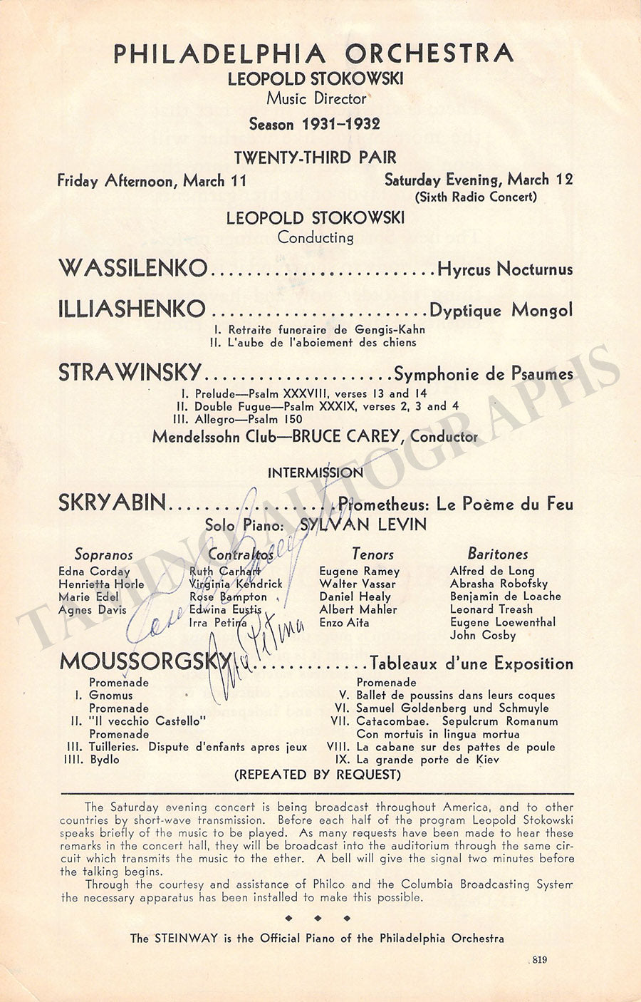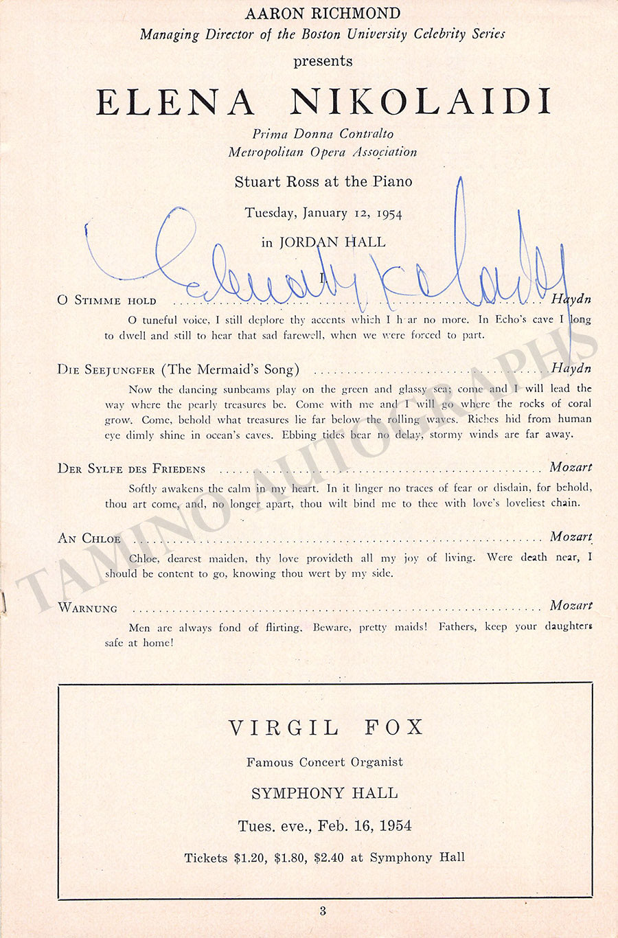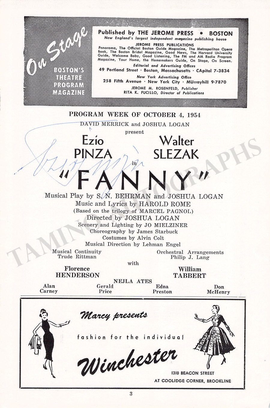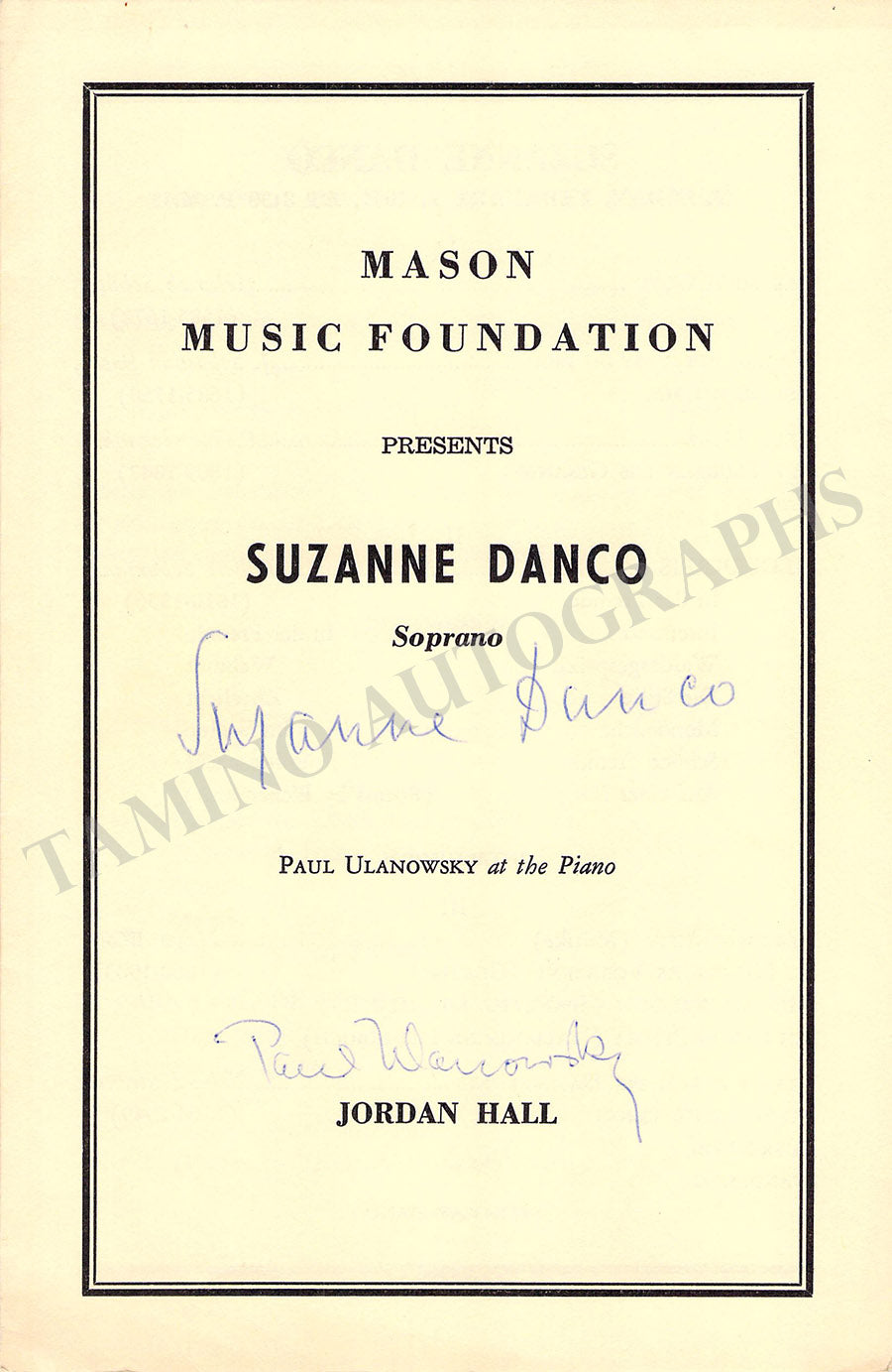 THE "TAMINO AUTOGRAPHS" semi-transparent legend over the pictures shown here does not exist in the actual item.