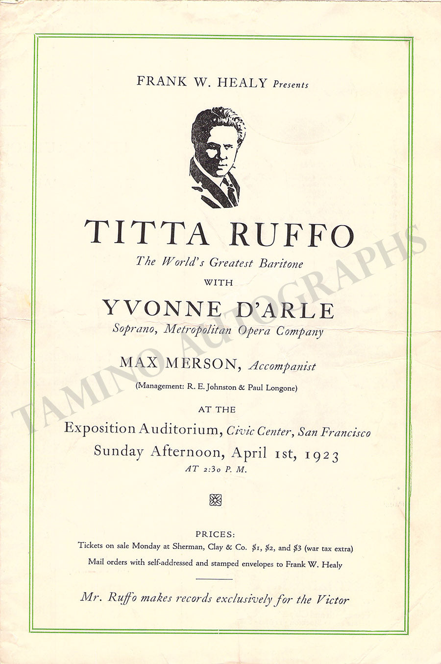 THE "TAMINO AUTOGRAPHS" semi-transparent legend over the pictures shown here does not exist in the actual item.