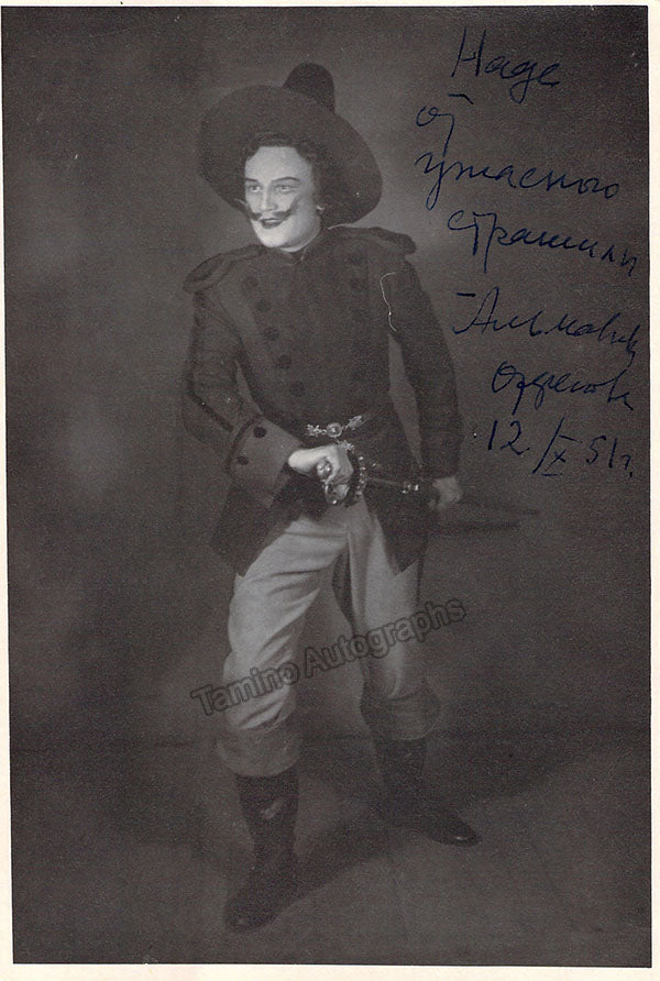 Russian tenor (1908-1987), signed photograph, shown in role, inscribed and dated in 1951. Size is 4.5 x 6.5 inches, in excellent condition.