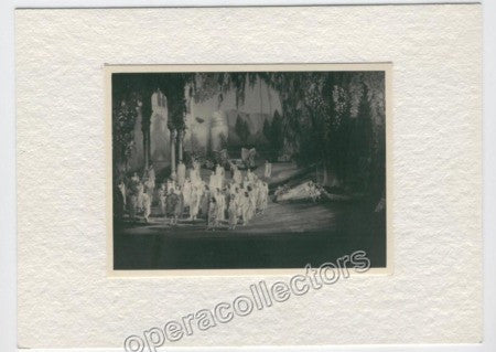 ORIGINAL (unpublished) pictures of the Parsifal performance of 20 August 1937 during the Bayreuther Buhnenfestspiele 1937 with Wilhelm Furtwangler conducting. Act 2, Max Lorenz, Martha Fuchs, with the flower-maidens. Rare pictures of the first Wieland Wagner stage decors, photographed during the actual performance, probably the only prints made or still surviving.  This photo belongs to a set of 6 pictures, size is 9 x 13 cm, mounted on cardboard 20 x 15 cm, Details are handwritten on backside in pencil about the performance and (musical) quotations when the picture was taken, all signed by the photographer, near mint condition. Rare photographic documentation of the Bayreuth Festival in Nazi-Germany.  OTHERS AVAILABLE AND NOT LISTED on this website: Bayreuth 1934 (Walkure, Siegfried, Gotterdammerung, Meistersinger and Parsifal), Bayreuth 1937 (Lohengrin), Bayreuth 1938 (Parsifal). Please inquire.