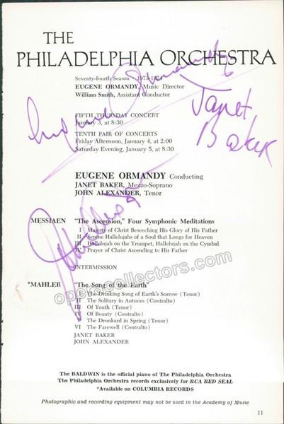 Philadelphia Orchestra concert, cast page only signed by the 3 artists, 1974