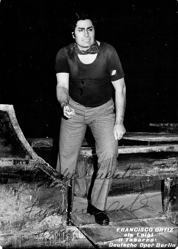 Spanish tenor (b. 1949), signed photograph, shown as Luigi in Puccini's Il Tabarro. Size is 4 x 5.75 inches, slight paper loss on edges, otherwise in very good condition