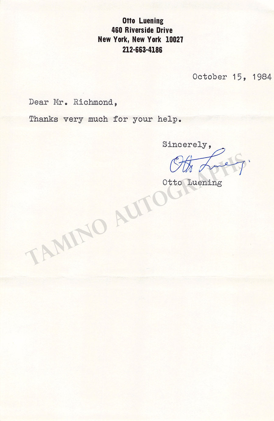 Luening, Otto - Set of 2 Typed Letters Signed (1984, 1993) Luening, Otto - Set of 2 Typed Letters Signed (1984, 1993)