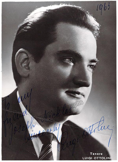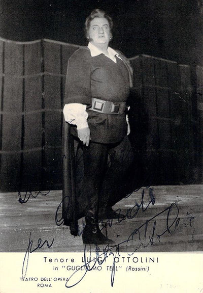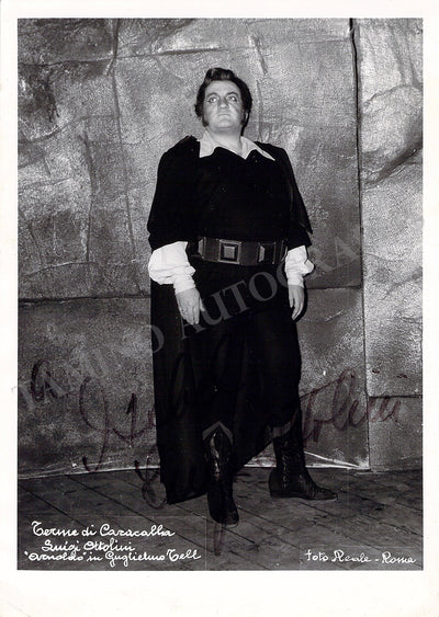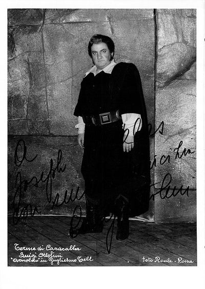Signed photograph, shown as Anoldo in Rossini's Guglielmo Tell. Photo by Foto Reale photography studio, Rome. Size is 5 x 7.25 inches, small crease on bottom left, otherwise in excellent condition.
