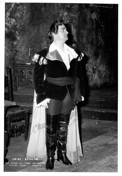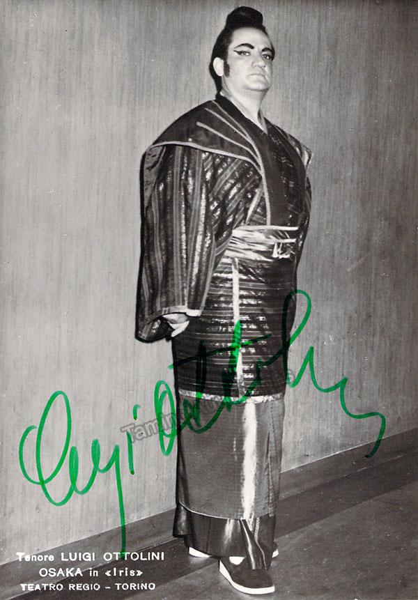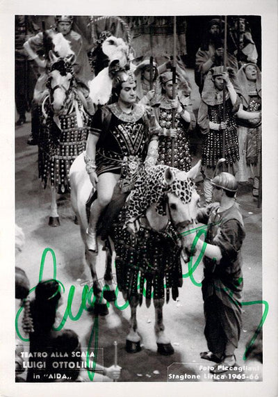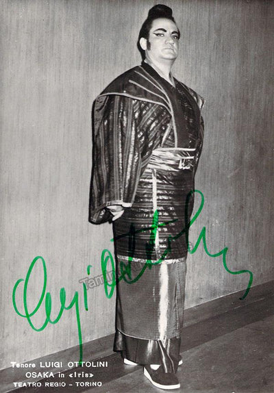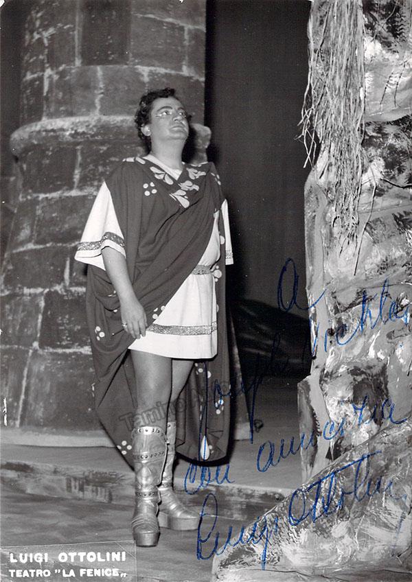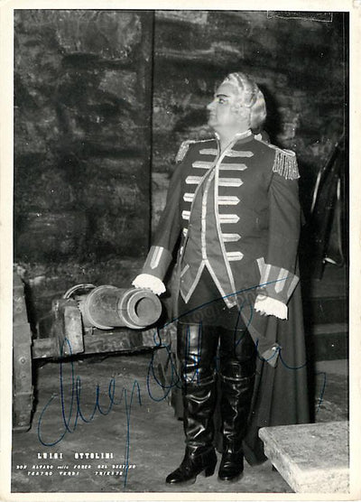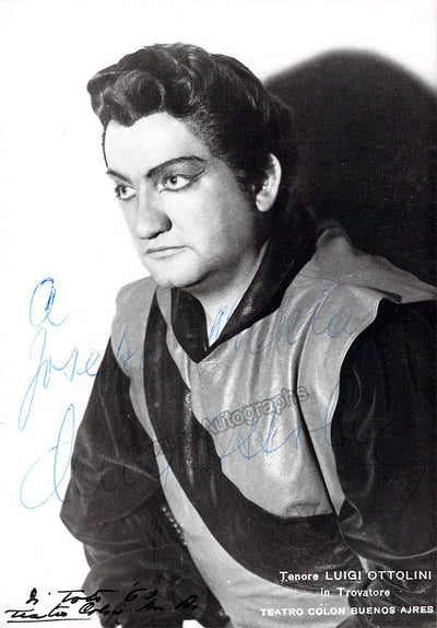 Signed photograph, shown as Riccardo in Verdi's Ballo in Maschera. Photo by Piccagliani, La Scala, Milan. Size is 4 x 5.75 inches, in excellent condition.