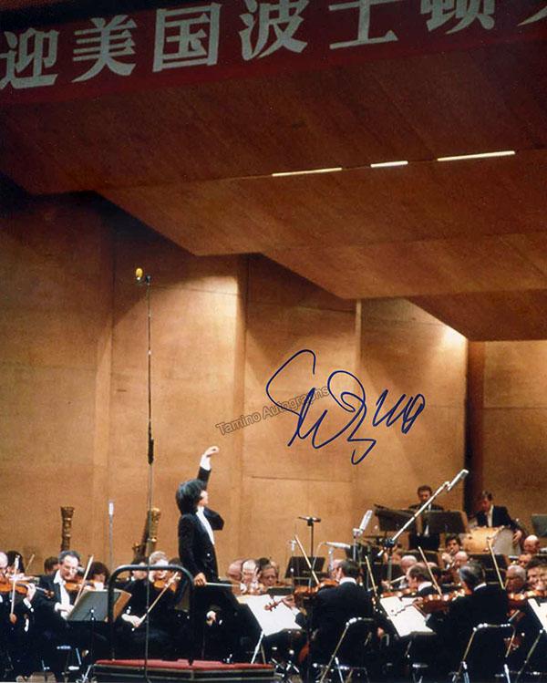 Japanese conductor (b. 1935), known for his interpretations of large-scale late romantic works, currently music director of the world famous Vienna State Opera. Signed photo, shown conducting. Size is 8 x 10 inches, in excellent condition.