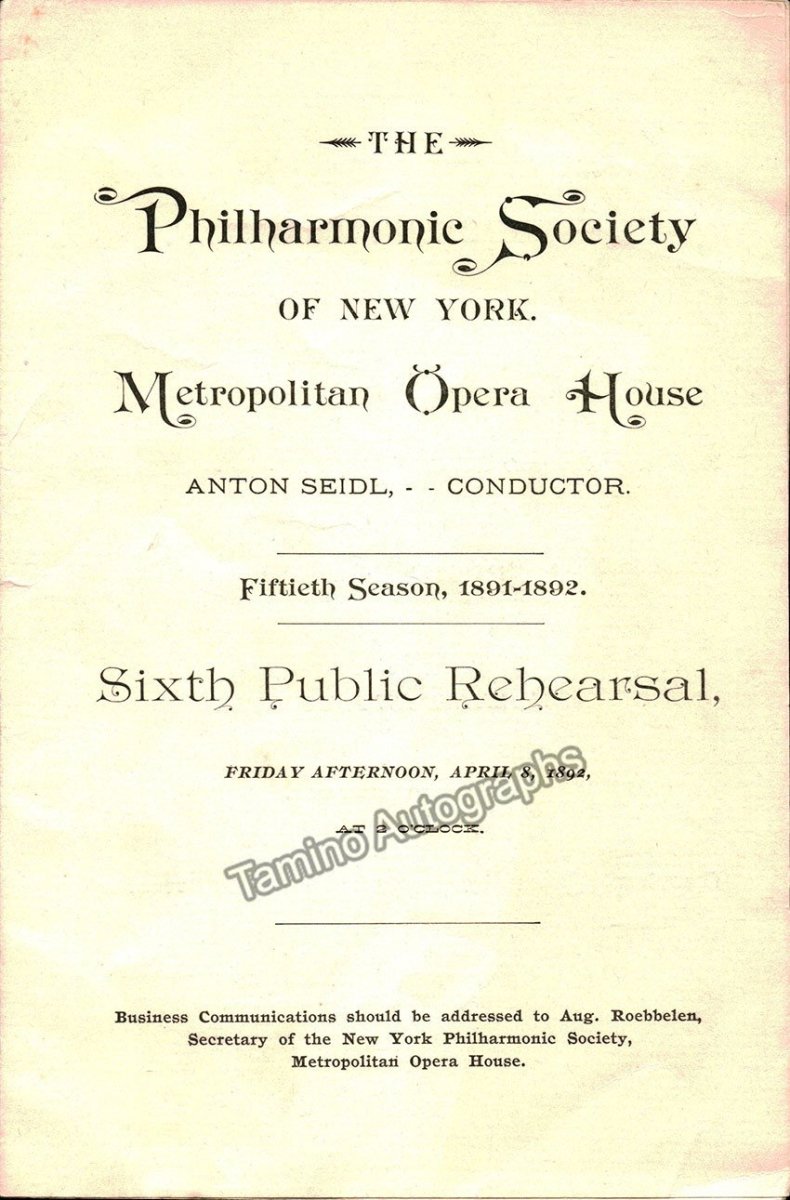 Pachmann, Vladimir and Seidl, Anton - Program 1892 - Tamino Pachmann, Vladimir and Seidl, Anton - Program 1892 - Tamino