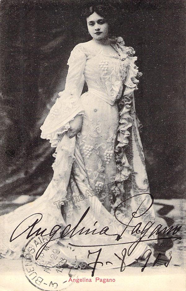 Argentinian stage and film actress and theatre director (1888–1962), signed photo postcard, shown in role, dated in 1913. Size is 3.5 x 5.5 inches, in excellent condition.