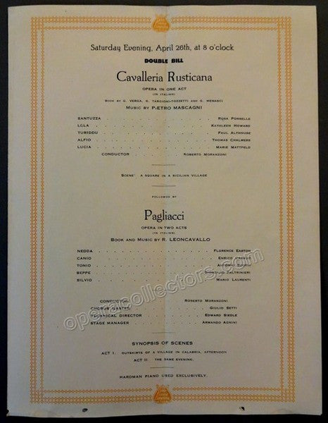 Pagliacci with Met Opera in Atlanta, Program 1919