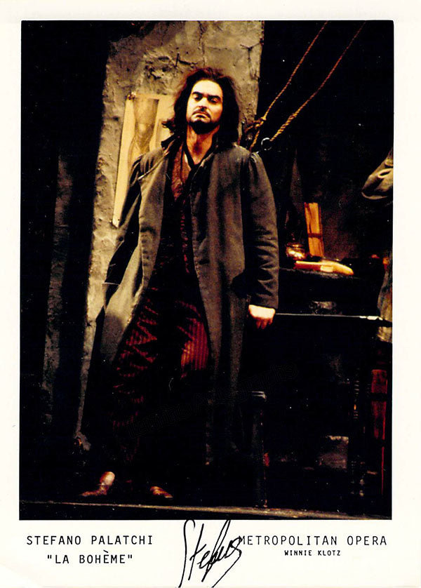 Spanish bass (b. 1960), signed photograph, shown as Colline in Puccini's La Boheme, photo by Winnie Klotz, Metropolitan Opera, New York. Size is 3.5 x 5 inches, very slight creases on edges, but in otherwise excellent condition.
