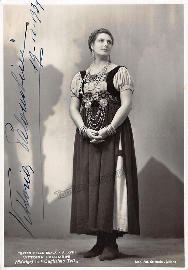 Italian contralto (1906-1971), signed photo, shown in Guglielmo Tell, dated in 1939. Size is 4 x 5.75 inches, in excellent condition.