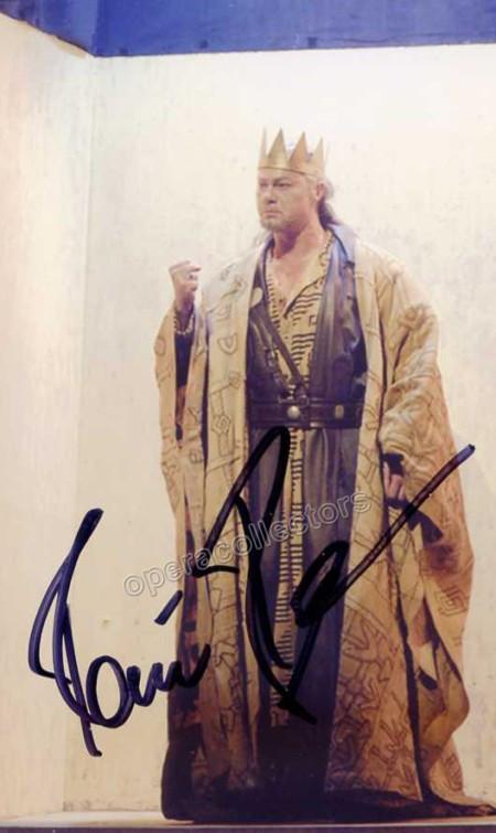 Signed photo of the German bass (b. 1964), shown as King Marke in Wagner´s "Tristan und Isolde" at the Met Opera. Size is 4 x 6 inches.