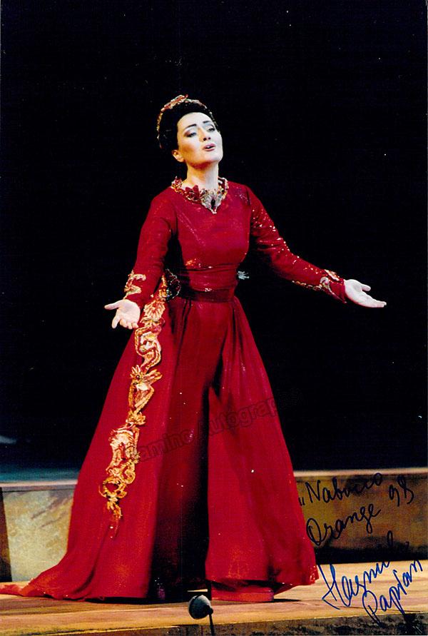 Armenian soprano (b. 1961), signed photo, shown as Abagaille in Verdi's Nabucco. Photo by Sigrid Colomyes. Size is 4 x 6 inches, in excellent condition.
