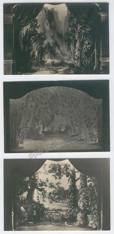 Parsifal 1927, Act 1 & 3, Wandeldekoration - Act 2, Klingsors Magic Garden - Act 3, Flower field - Décors by Kurt Söhnlein - Photographs-postcards by Ramme, Bayreuth, 9 x 13cm, mint condition.