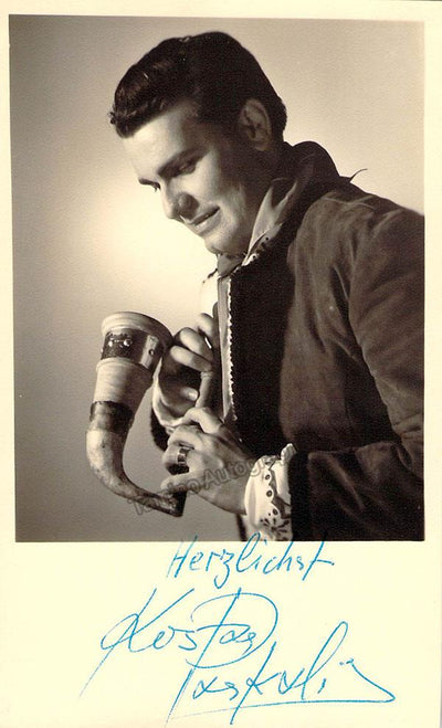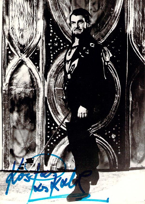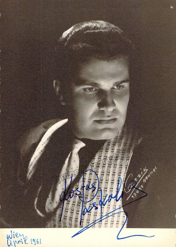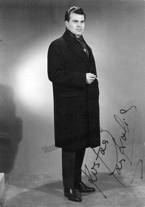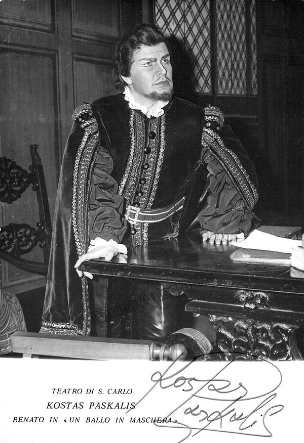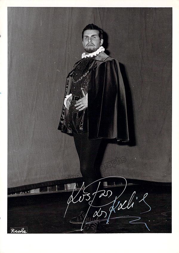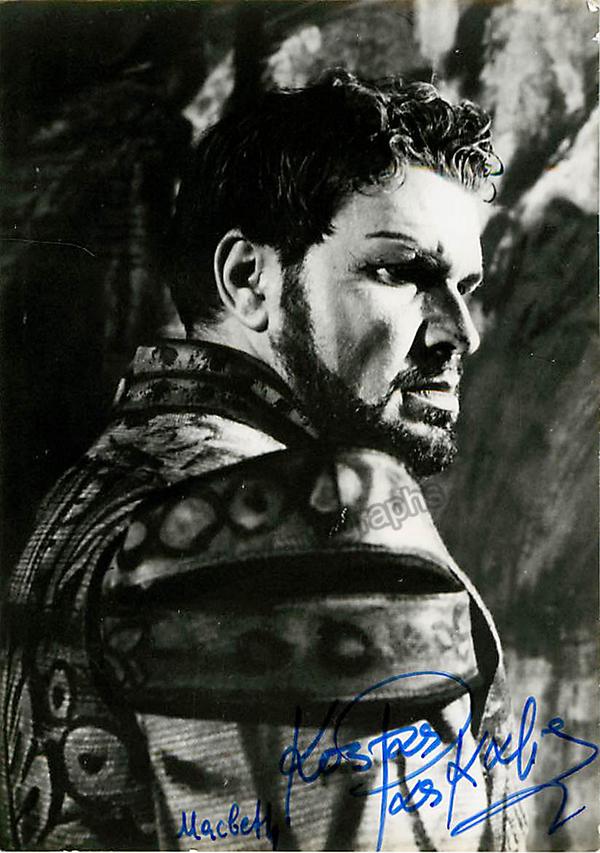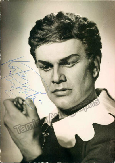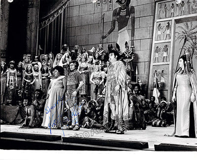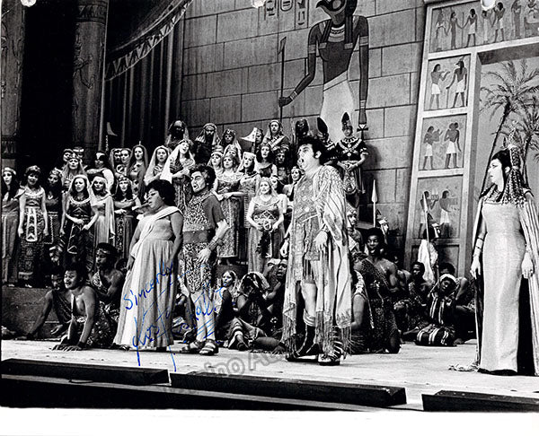 Signed photograph, shown as Amonasro in Verdi's Aida with Martina Arroyo, Placido Domingo and others. Size is 8 x 10 inches, several small tears at the top of the photo not affecting image and signature, otherwise in very good condition.