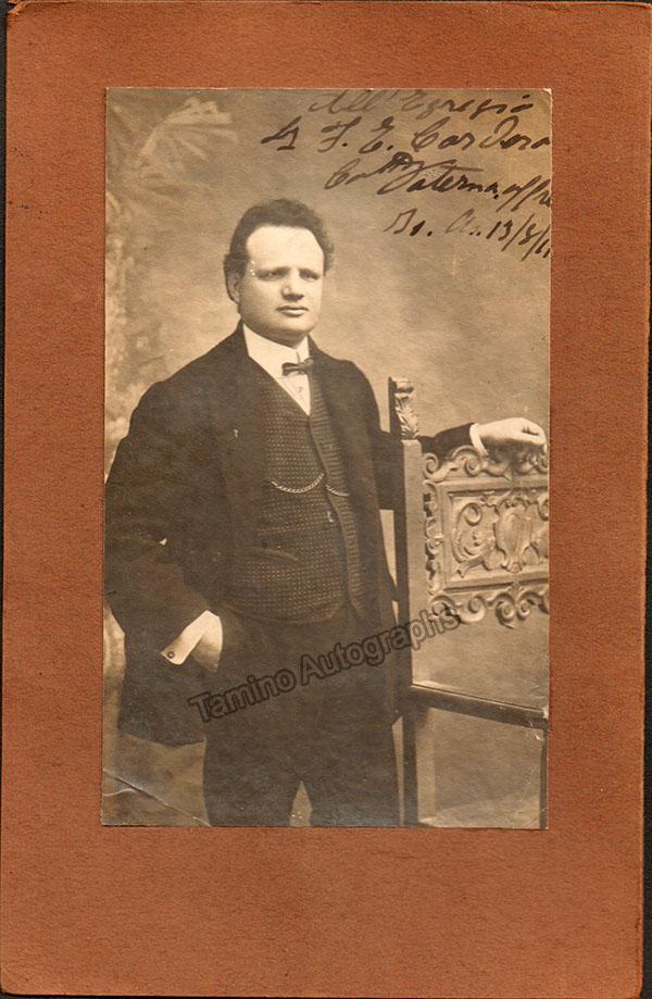 Italian bass (1874-?), signed photo, shown as himself, inscribed and dated in Buenos Aires in 1911. Photo is mounted on a cardboard, size is 4.25 x 6.5 inches, in excellent condition.