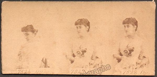 Super star Italian soprano (1843-1919), one of the greatest singers of the 19th century. Set of 4 mini-photos, probably proofs for the creation of cabinet-style photographs that are larger in size. Different sizes, but approx. 1.5-1.75 to 2.25-2.5 inches (one is 3.75 inches long), age fading, overall in very good condition.