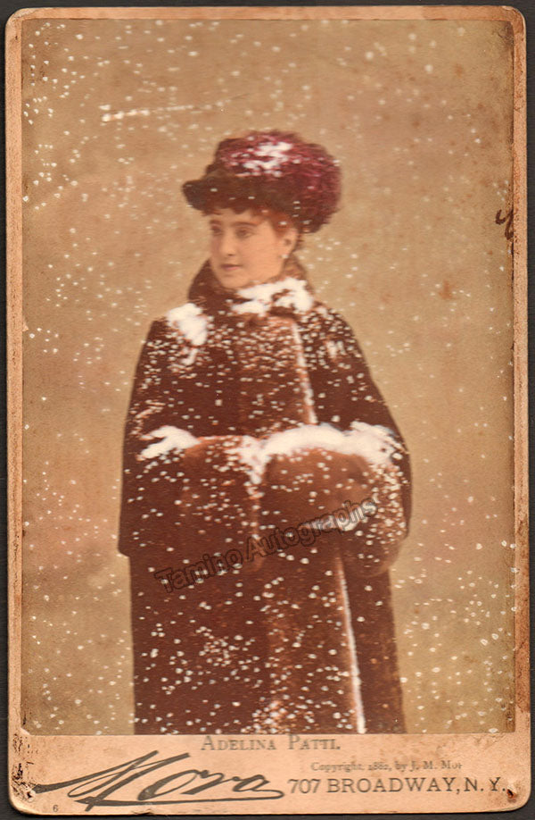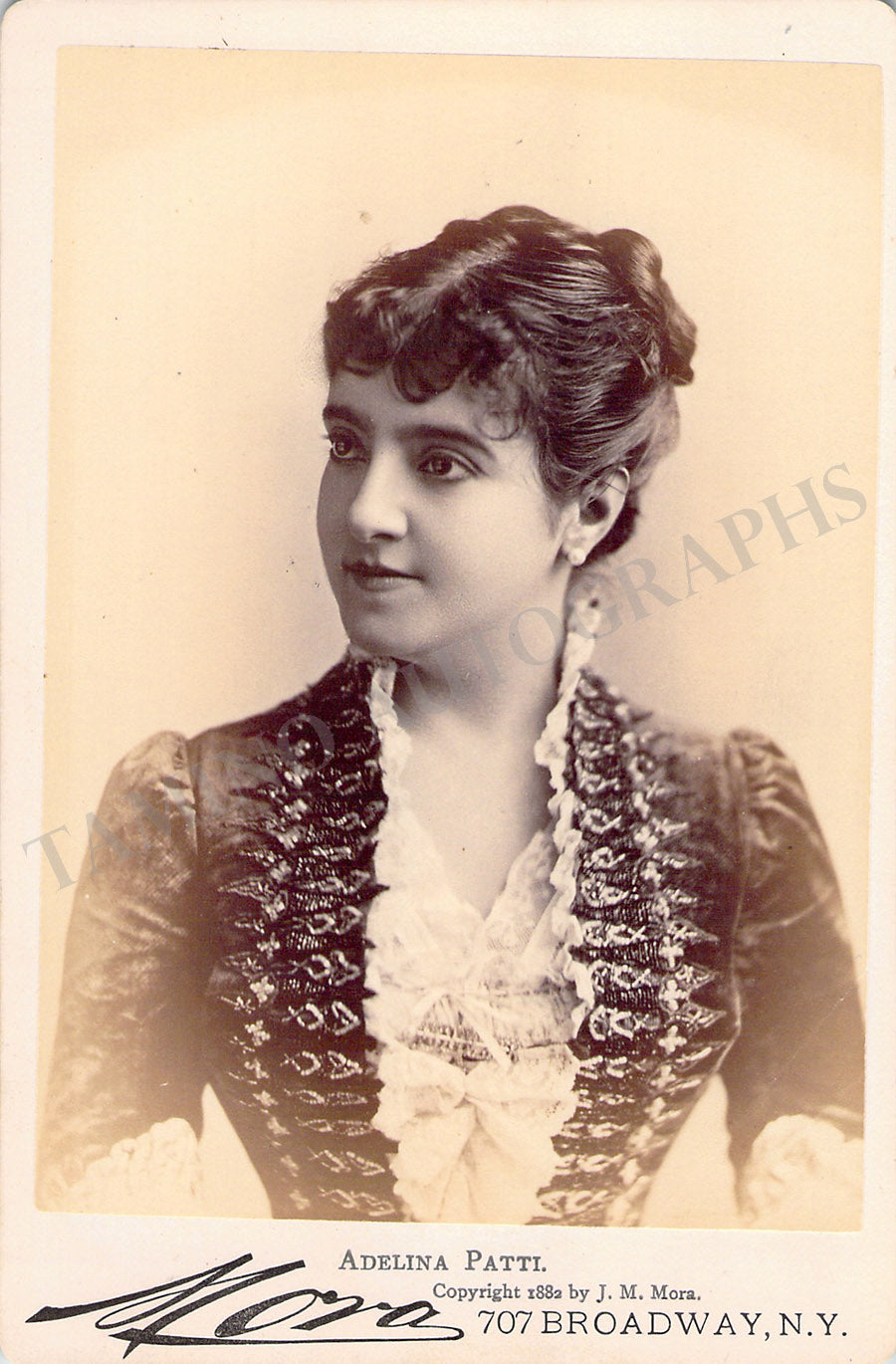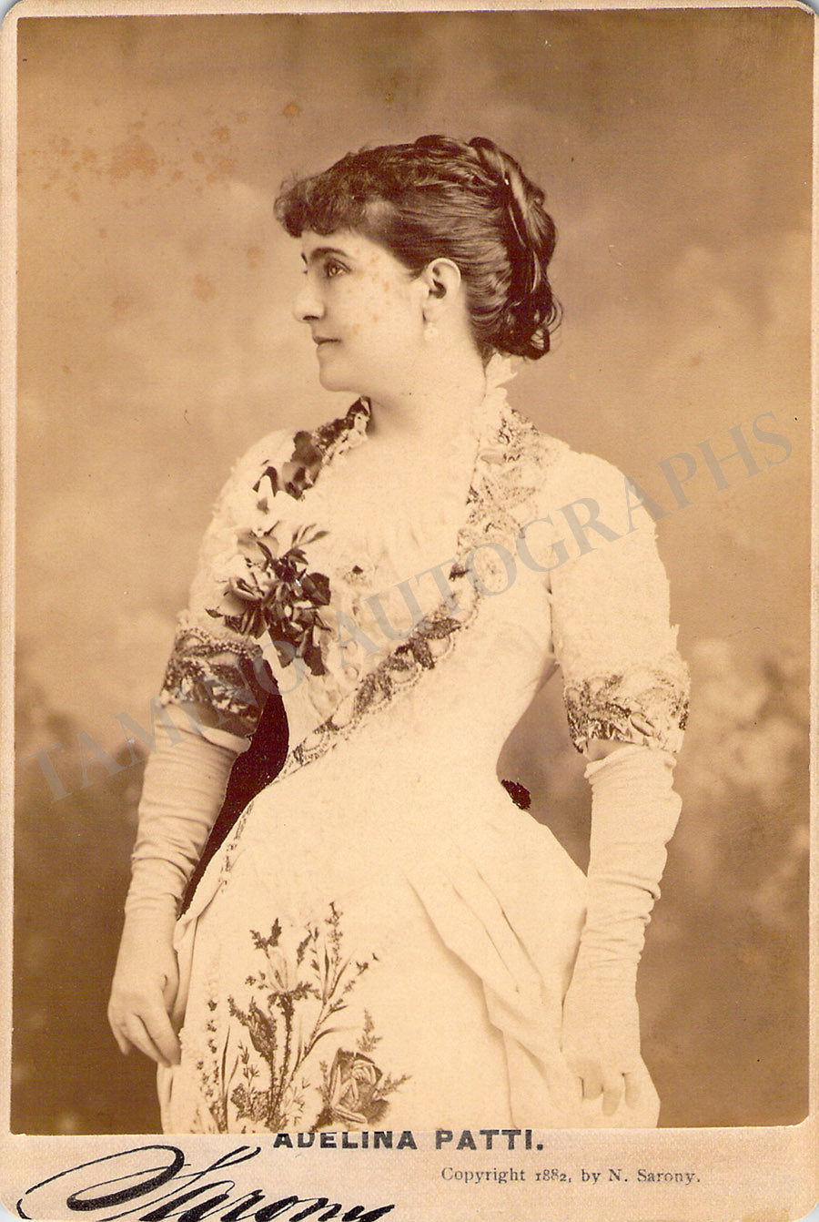 Beautiful vintage cabinet photo by Sarony (New York) featuring Patti. Size is 4.2 x 6.5 inches, in excellent condition.