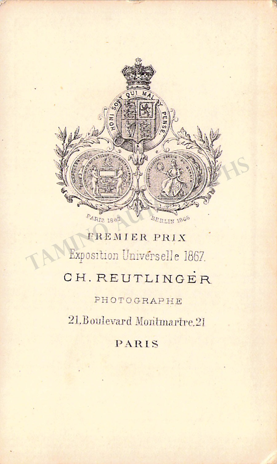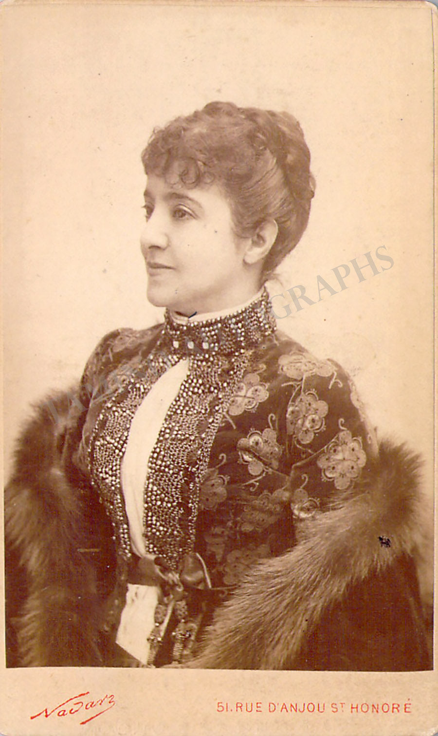 Beautiful cabinet photograph of her by Charles Reutlinger (from the 1870s). Size is 4.25 x 6.5 inches, mounting traces on verso, in very good condition.