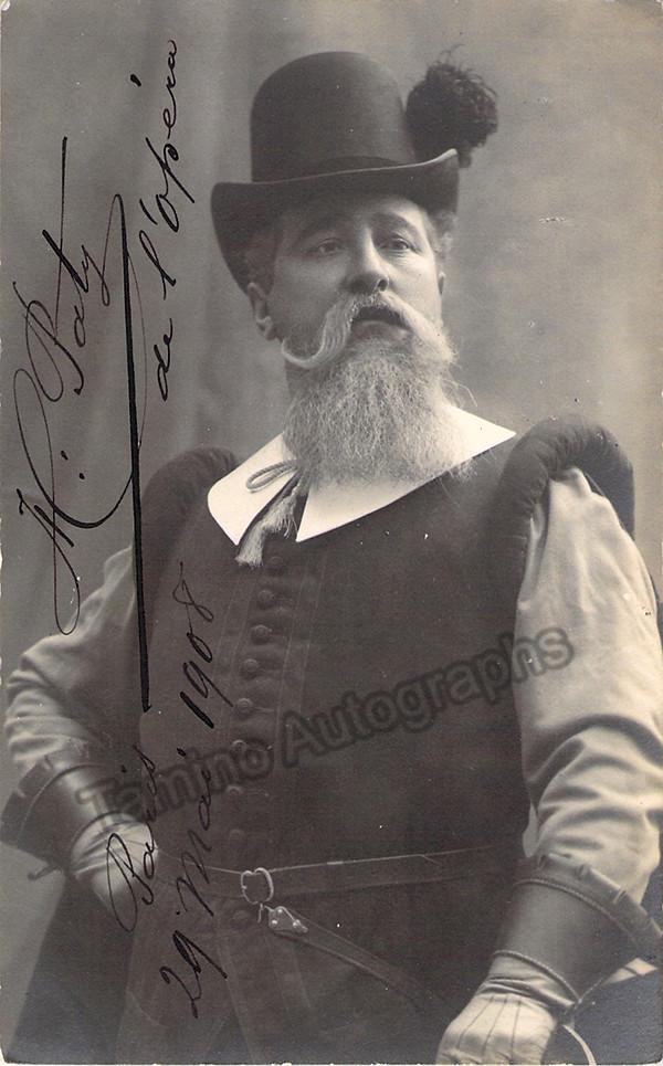 Belgium bass (1875-?), signed photo postcard, shown in role, dated in 1908, Paris. Size is 3.25 x 5.5 inches, in excellent condition.