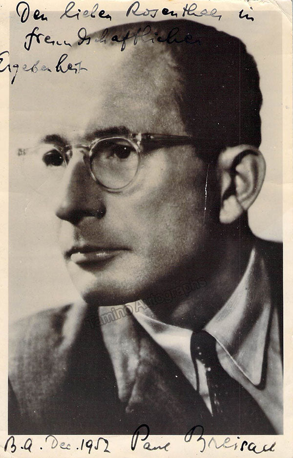 Black-and-white photograph signed and inscribed by him with a sentiment dated in Buenos Aires, 1952. Size is 3.75 x 5.75 inches, some creases, in good condition.